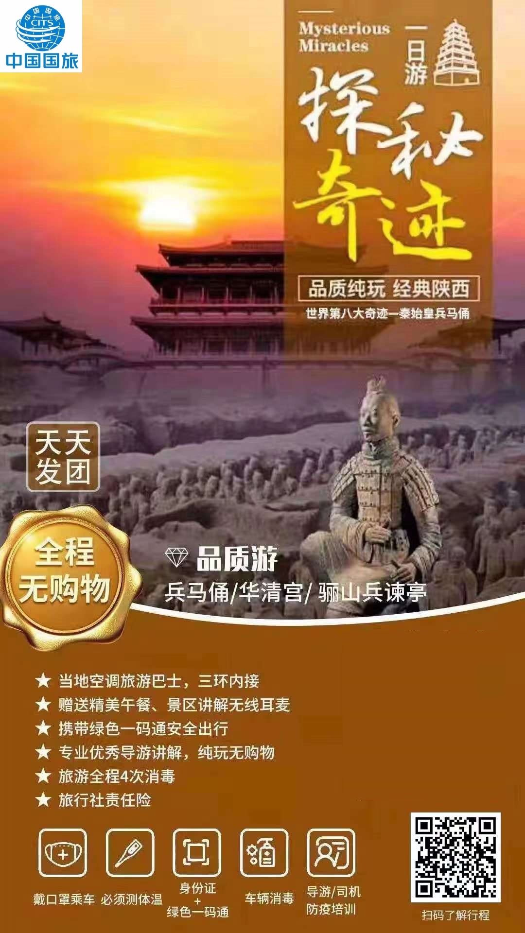1.交通:全程空调旅游车,一人一正座;西安市区二环以内都可以上门接游客。