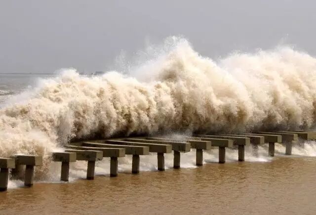 钱塘江河口呈巨大的喇叭形,杭州湾口南北两岸相距约100公里,至钱塘江口缩小到20公里,再上至海宁盐官,仅为2.5公里。此河段受江面束窄、河床隆起的影响,潮波破裂汹涌,形成天下奇观“钱塘江潮”。